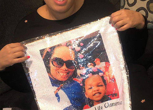 Material: Front: Reversible sequin fabric Back: Quality Suede plush fabric